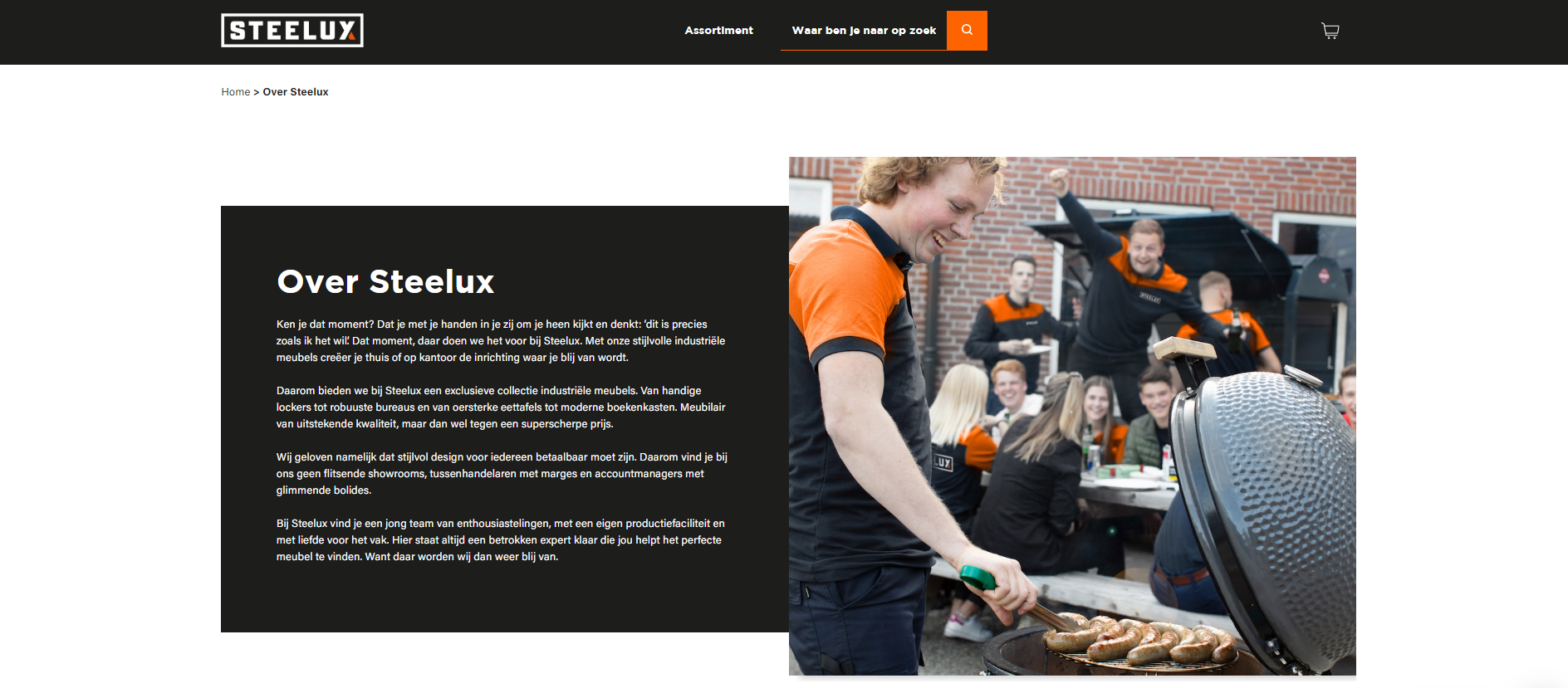 Steelux verkoopt industriële meubels aan particulieren. Het bedrijf komt voort uit Povag, dat is gespecialiseerd in industriële meubels voor bedrijven. En de wereld van industriële meubels is er één van no-nonsense en een niet-lullen-maar-poetsenmentaliteit. Daar wilden ze dan ook passende webteksten bij. Niet te glad, maar oprecht, enthousiast en betrokken en gericht op een breed publiek. En met zo min mogelijk woorden.